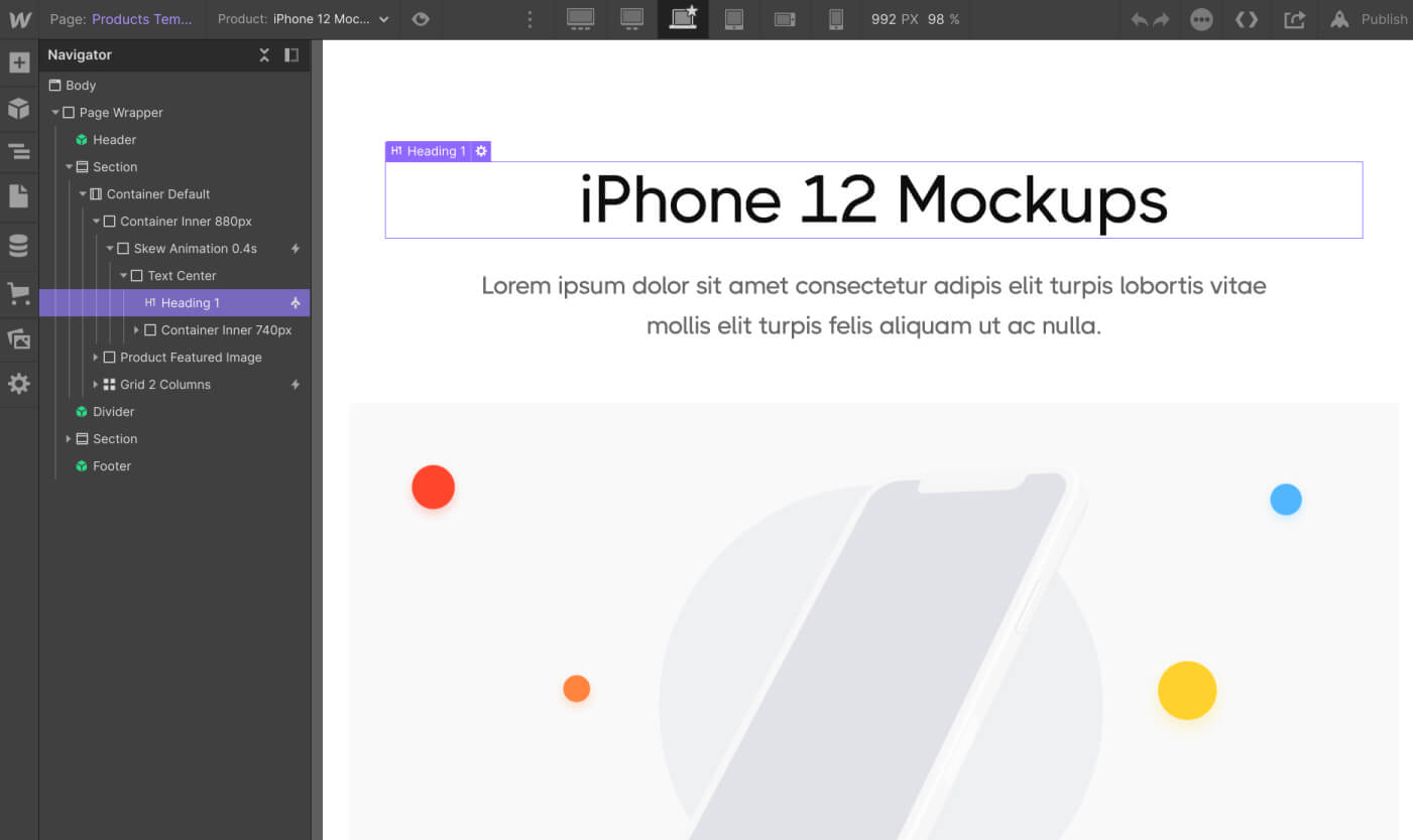 Everytime you make a change (for example, you create a new section design), it's a good practice to go to your Viewport top navigation and see how it looks on Tablet and Mobile.